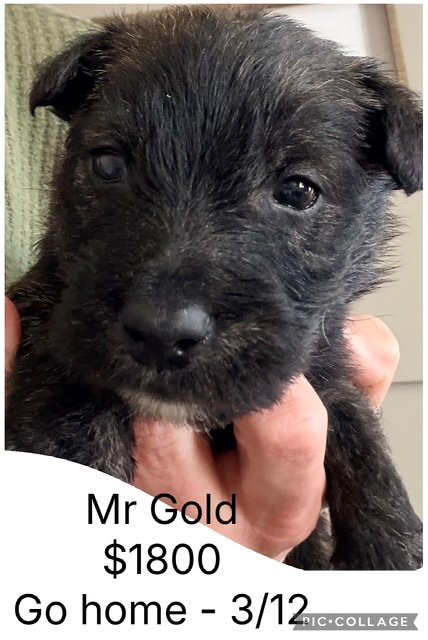 Coat: Dense, wiry double coat (typically black, brindle, or wheaten)